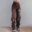 Brown Ripped Vintage Woman's Distressed Jeans Streetwear Hole Hip Hop High Waist Pants Fashion Straight Denim Trousers Ladies